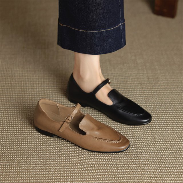 Crafted from premium genuine leather with a soft sheepskin insole, these flats offer a smooth, breathable feel that keeps your feet cozy throughout the day. The adjustable buckle strap ensures a secure fit, making them ideal for long walks, casual outings, or relaxed office settings. The solid color and subtle sewing details give a refined, retro-inspired look that stands out effortlessly.
