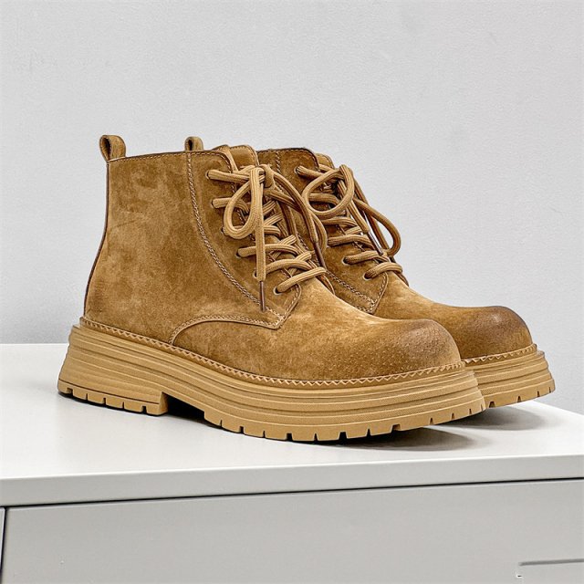 Discover the perfect blend of classic design and modern comfort with these men’s yellow suede ankle boots. Crafted from premium cow suede, these boots offer a soft yet durable texture that ages beautifully over time. The round toe design and low heel provide a relaxed fit, making them ideal for long days of walking or casual outings. With a vintage British style, these boots are versatile enough to complement both smart-casual and everyday looks.