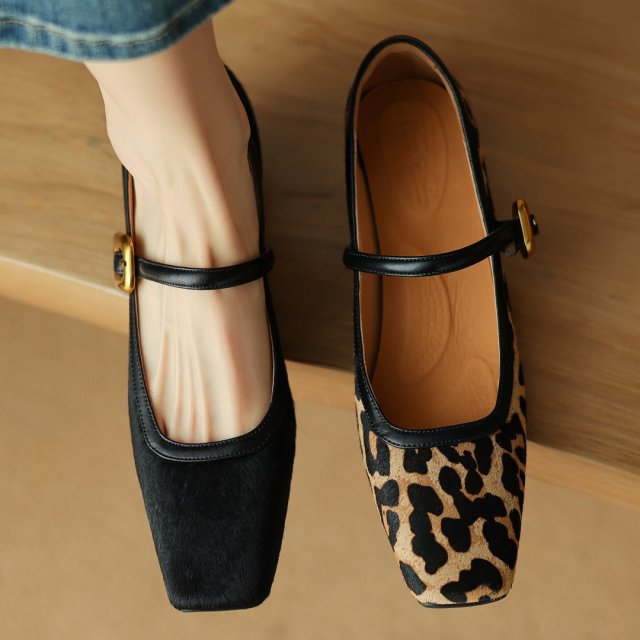 Bring a touch of wild sophistication to your everyday look with these stunning plus size leopard print Mary Jane flats. Designed for women who value both style and comfort, these elegant square-toe shoes blend high-quality craftsmanship with timeless design. The chic horsehair and cow leather upper pairs beautifully with the sleek buckle strap, making them the perfect finishing touch for both casual and dressy outfits.