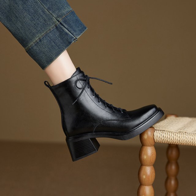 Step into effortless style with these women’s black leather lace-up pumps. Crafted from genuine cow leather, the shoes offer a soft, luxurious feel while maintaining long-lasting durability. The square toe design gives a modern twist to a classic silhouette, while the low square heel ensures comfort for all-day wear. These pumps are both versatile and chic, making them an essential addition to any wardrobe.