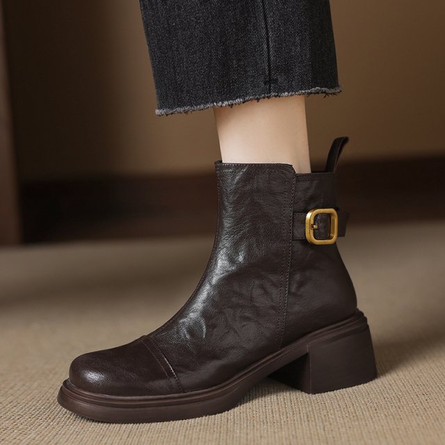 These boots aren’t just stylish—they are built for practical comfort. The genuine leather adapts to the shape of your foot, while the square heels and rubber outsole provide traction and stability on different surfaces. Handmade with attention to detail, these boots stand out for their quality and durability. The minimalist, concise design makes them suitable for work, casual outings, or weekend adventures, while the zipper detail adds a modern edge.