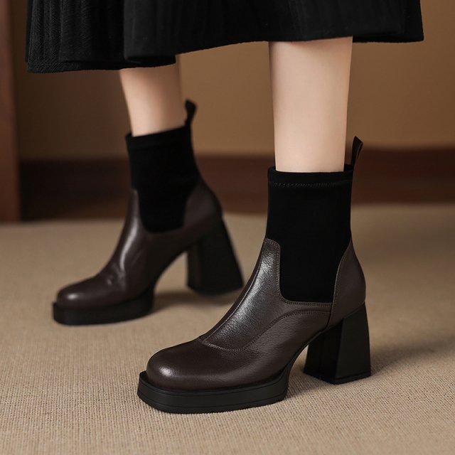 Upgrade your autumn and winter wardrobe with these elegant genuine leather ankle boots. Designed for modern women who love comfort and sophistication, these boots feature a sleek round toe, a flattering high block heel, and a stylish stretch fit for easy wear. The rich leather upper paired with a soft sheepskin insole ensures a luxurious feel with every step. Whether you are heading to work, enjoying a night out, or strolling through the city, these ankle boots will elevate your style effortlessly.