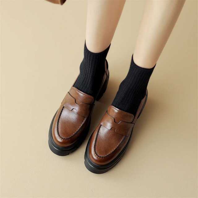These women’s genuine leather chunky heel platform loafers are designed for modern women who value both elegance and comfort. Made from premium cow leather inside and out, they deliver unmatched softness, breathability, and durability. With their classic round-toe design and 7-inch chunky heel, these loafers add height while keeping you stable and supported. Perfectly blending casual charm with a touch of sophistication, they’re a must-have for your wardrobe.